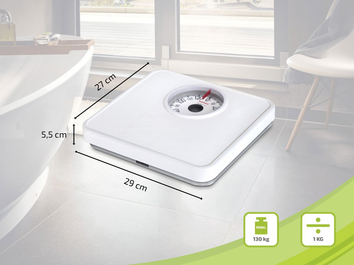 Analog personvåg med lättavläst display som gör det att det är enkelt att läsa av vikten. Vågen har en klassisk design med stor display och en halksäker vågplattform för bättre balans,. Vågen visar upp till 130 kg i intervaller på exakt 1 kg. 3 års garanti.