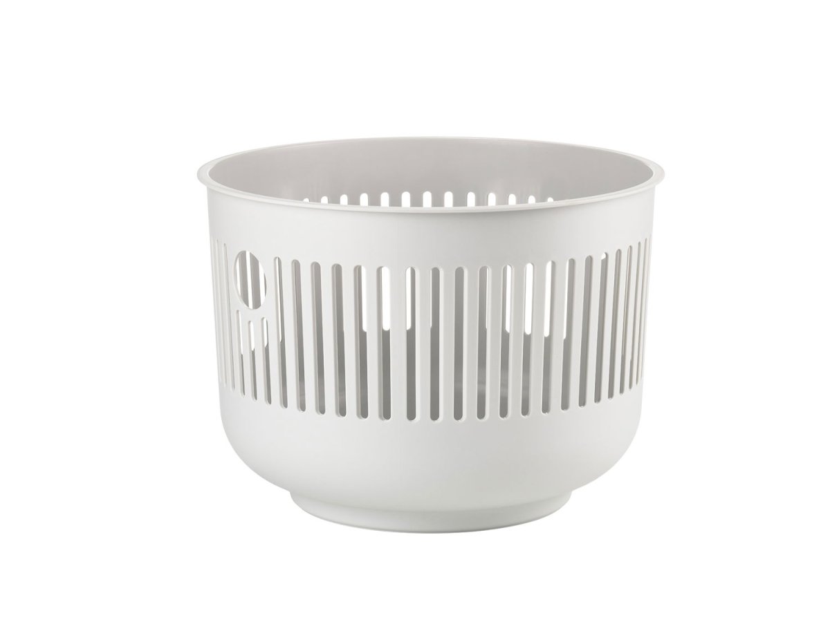 Den låga, öppna UME-korgen är praktisk och snygg på samma gång. Dess organiska och genomskinliga utseende ger en lätthet i rummet. Två runda hål på sidorna fungerar som grafisk ögonfröjd och dessutom som handtag för att enkelt flytta runt den. Korgen är perfekt när du ska transportera smutsig tvätt till maskinen eller ren tvätt till klädstrecket. Matchar den stora varianten med lock i samma serie och finns i alla härliga UME-nyanser.