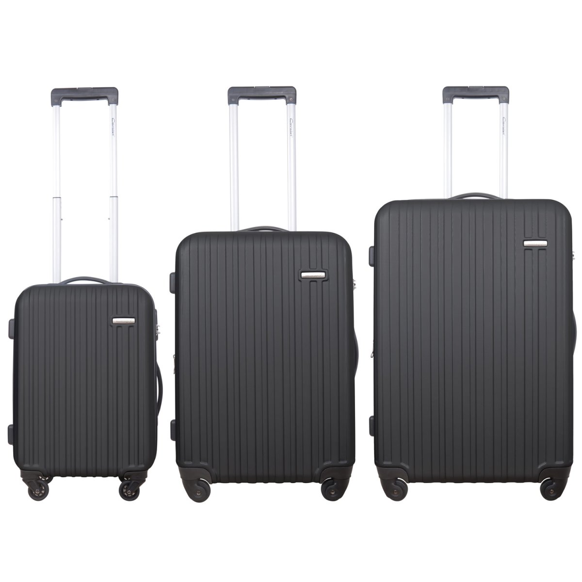 Cavalet Rhodos är en modern och praktisk resväska för dig som älskar att resa! Gummerade handtag, fyra hjul som är lätt att köra. Handtag - Justerbara teleskophandtag upptill samt gummerade bärhandtag Lås - Tresiffrigt kodlås Hjul - Fyra hjul för lättare manövrering Interiör - Helfodrad med stängbart fack på ena sidan och justerbara packningsband på andra. Detta set består utav 3 olika resväskor: 1: 54x38x20 cm (32L) 2: 64x44x26 cm (60-70L) 3: 74x51x29 cm (96-109L)