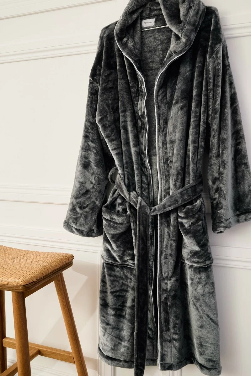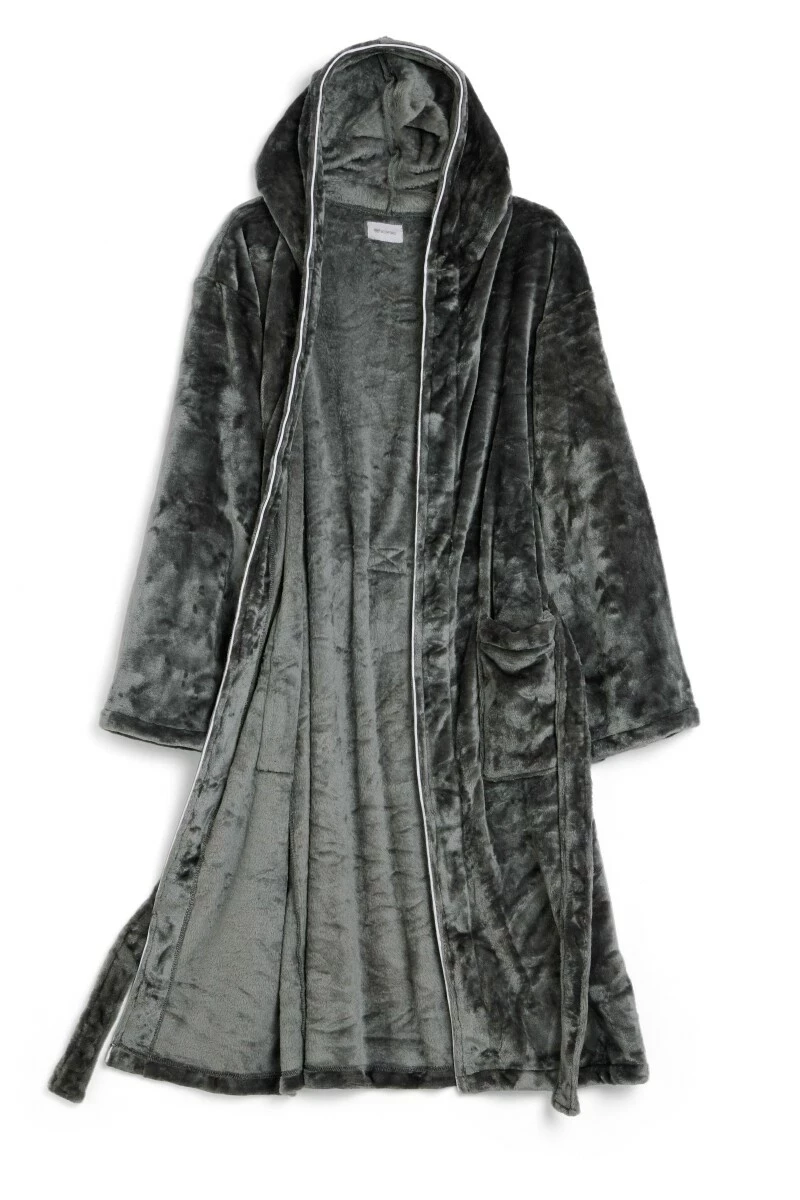 Morgonrock i flanellfleece med omslutande luva. Med sin lyxigt mjuka kvalitet är den som gjord för lugna stunder. Den lena fleecekvaliteten sveper in dig i komfort, medan luvan ger extra värme när du behöver det som mest. Perfekt för morgnar, kvällar eller lugna helger hemma.