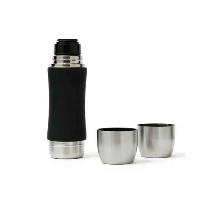 Njut av varm dryck i skogen, i skidbacken, på utflykten eller stranden. Det praktiska termossetet kombinerar en generös 750 ml vakuumisolerad termos med två 330ml muggar. Termosen är tillverkad med dubbla väggar i rostfritt stål. Den avancerade vakuumisoleringen ser till att drycken håller sig varm eller kall i många timmar, oavsett väder. Självklart är den helt BPA-fri, för en trygg och ren smakupplevelse. Den matta, solida färglackeringen ger en modern och tålig finish som står emot repor och slitage. De medföljande muggarna i rostfritt stål gör det smidigt att dela drycken. Ett komplett set som gör varje paus bättre.
