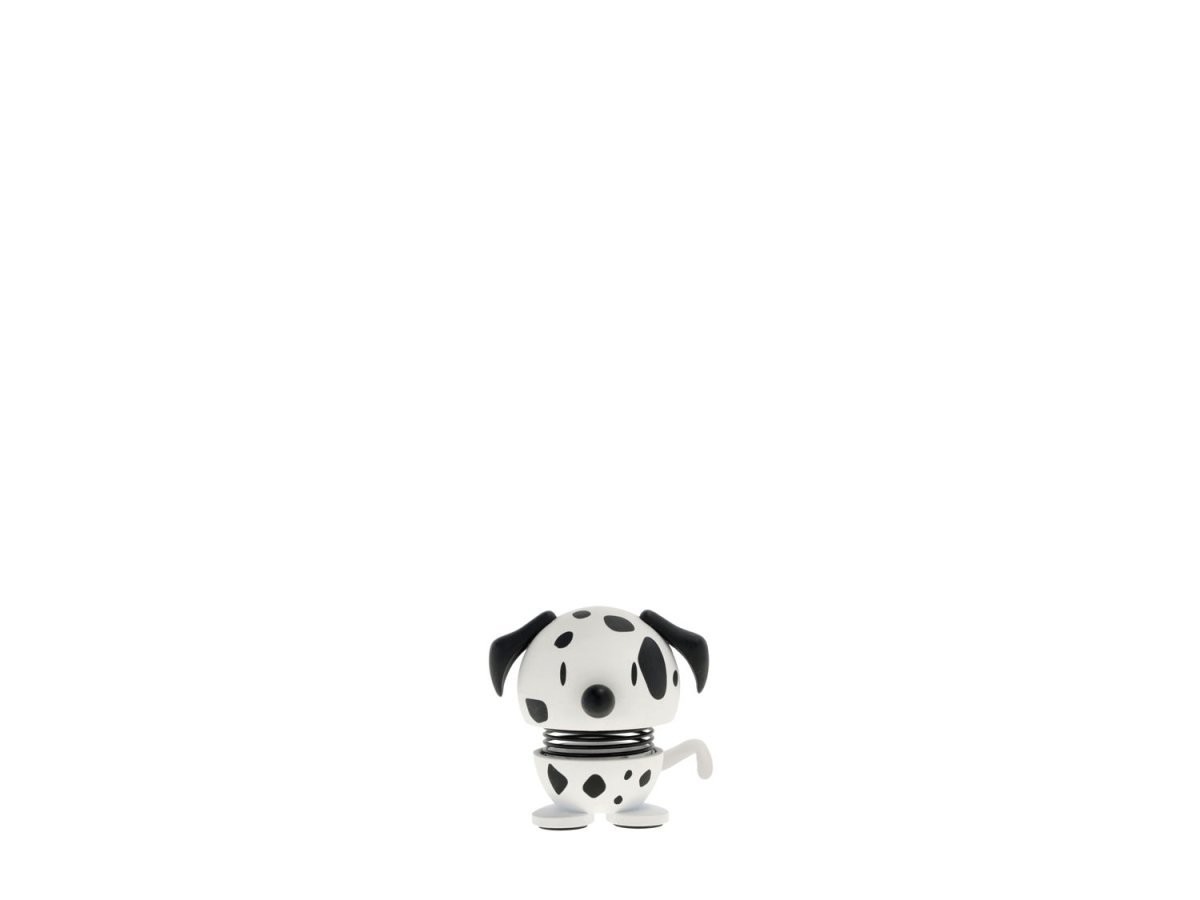 Elegant och full av prickar. Den här dalmatiner-Hoptimisten drar blickarna till sig med sitt prickiga yttre och sina små, glada hopp. Man blir på gott humör direkt. En härlig presentidé till alla hundälskare som varje dag gläds åt hundens fantastiska humör. Det smittar – och gör dig glad. H 4,9 cm, D 4,8 cm Med en stark tro på leendets kraft skapade Gustav Ehrenreich i slutet av 1960-talet sin glada Hoptimist-rörelse. Målet var att skapa en figur som var en evig påminnelse om att vara positiv och optimistisk. För även om 1960-talet ofta kallas ”det glada 60-talet” så var det ett årtionde präglat av oroligheter. Därför var Ehrenreichs design en välkommen glädjespridare i en annars turbulent tid. Bimble och Bumble är de första Hoptimisterna som designern skapade: En flicka i klänning med leende ögon och en kille med uppmärksam blick och en liten pinne på huvudet. De glada Hoptimisterna är idag en del av dansk designhistoria och sprider glädje runt om i hela världen. Figurerna finns i fyra olika storlekar och i ett brett utbud av färger som sprider mycket sprallig glädje och gott humör. Det finns garanterat en Hoptimist för alla tillfällen och alla individer.