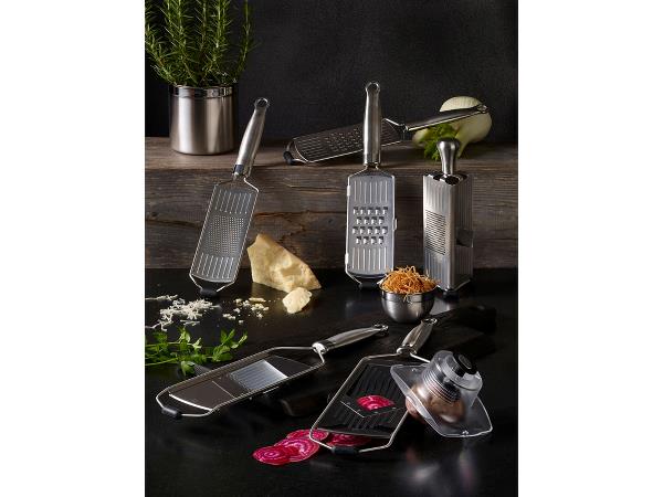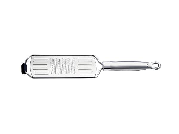 RÖSLE fint rivjärn med handtag, tillverkat uteslutande av rostfritt stål. Det ergonomiskt formade handtaget ligger stadigt i handen och har dessutom en praktisk krok för upphängning. Perfekt för hård ost, till exempel parmesan för en fulländad pastarätt, till kryddor, choklad eller ingefära när du ska baka. Rivjärnets specialformade tänder ger snabb rivning med minimal insats. (R95004)