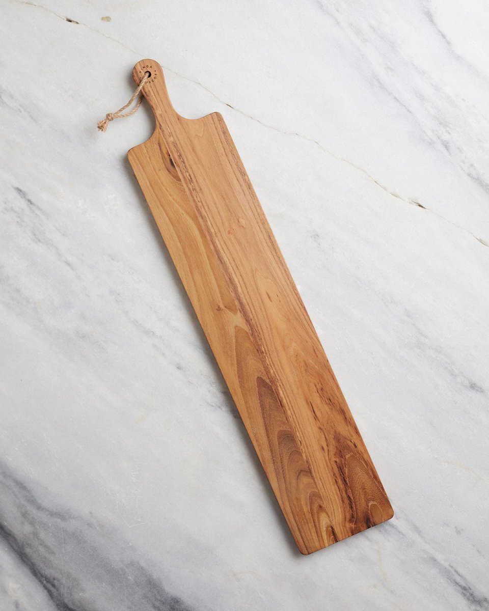 Robust och mycket användbar skär-/serveringsbräda som med sin längd på 75 cm och bredd på 15 cm ger en stor yta att skära eller servera på. Skärbrädan är gjord av FSC®-certifierad teak och har en vacker gyllene till mellanbrun tränyans, som blir mörkare över tid. Brädan är försedd med ett stabilt och bra handtag som gör den enkel att förflytta. Den har även ett rikligt oljeinnehåll, vilket gör den väl skyddad mot röta.