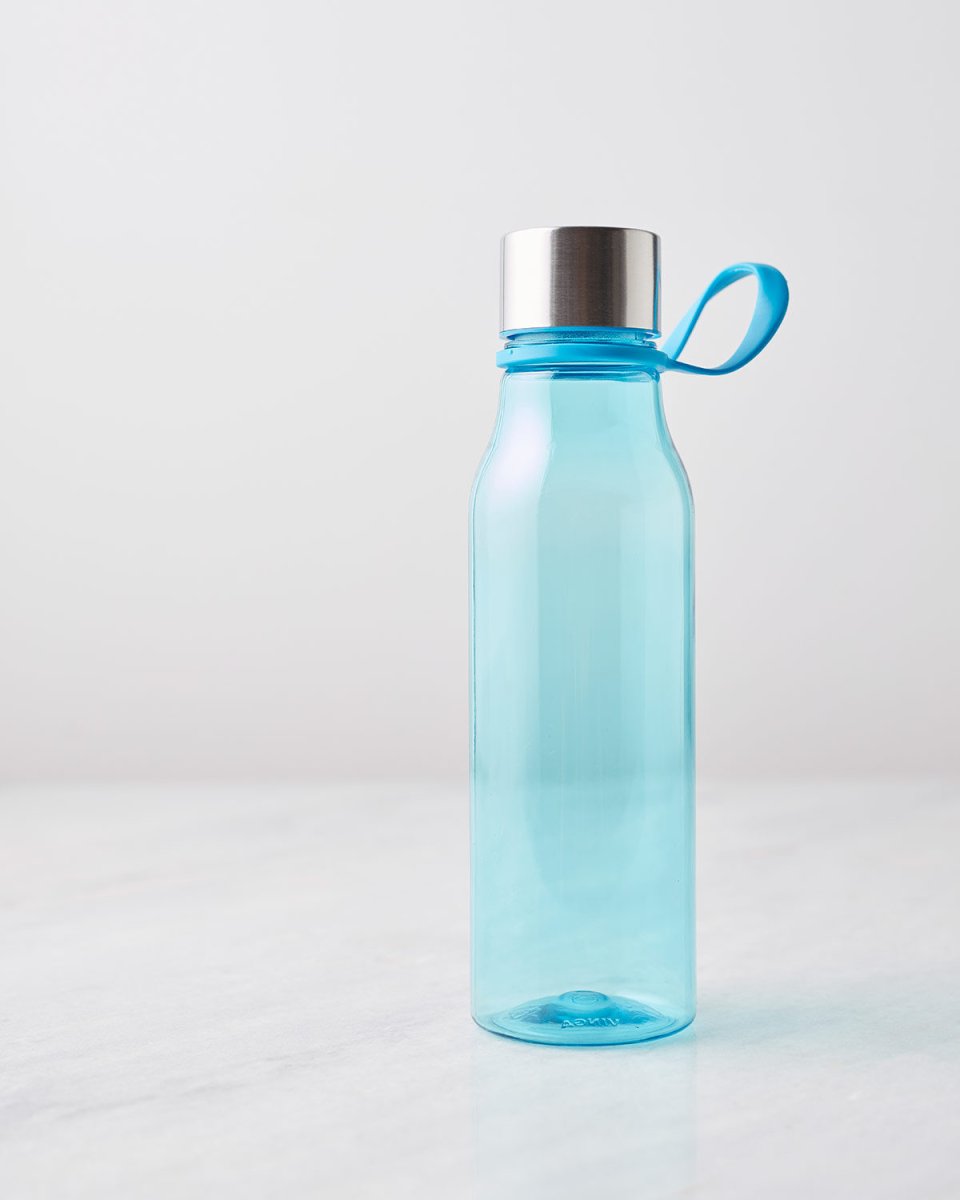 Vattenflaska i BPA-fri tritanplast. Öglan på locket gör den enkel att hänga på väskan samt att den nätta formen gör att den passar i de flesta mugghållare. Flaskan är enkel att rengöra. Passar bra att lägga ett tryck på. Silikonöglan monteras enkelt på flaskan och levereras löst.