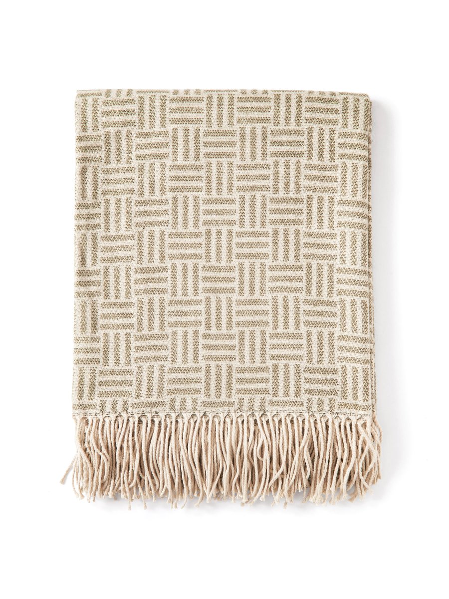 Jacquardvävd pläd med ett subtilt geometriskt mönster som ger pläden en stilren design, som med säkerhet kommer pryda de flesta hem. En utmärkt pläd för dig som inte nöjer dig med enbart bekvämlighet, utan som även vill ha något som ger ett mer stilfullt intryck i hemmet. Tillverkad av 100% acryl, ett konstgjort syntetmaterial med egenskaper som skall efterlikna ullfibern.