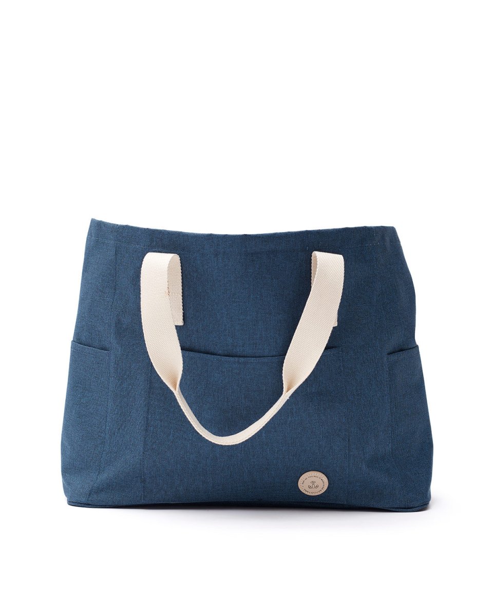 Den här stilrena strandväskan kommer utan tvekan förenkla dina dagar på stranden. Väskan är försedd med praktiska dubbla bärhandtag. Strandväskan är rymlig och har smarta fack. Detta i form av ett mindre fack på insidan med dragkedja som lämpar sig för värdesaker, och tre mindre fack på utsidan som kan förvara sådant som kräver enkel tillgång. Väskan är lätt att torka av och de snygga detaljerna i bomull och konstläder ger strandväskan lite extra elegans.